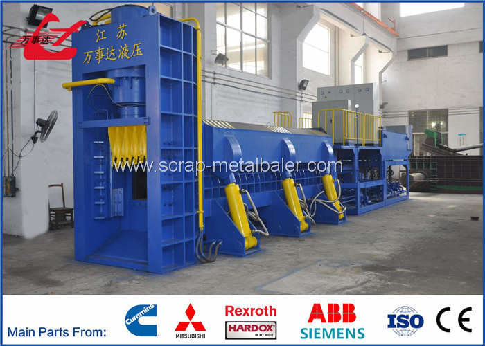 Our Y83Q-6300C Waste Car Shear Press is designed for cold compaction of various thin metal materials with less than 4mm in thickness into rectangular bales at normal state, such as scrap steel, scrap iron, iron and steel scrap, and wire rod, etc. Furthermore, this metal scrap baling machine is capable of cutting the rectangular bales to a required length as per application needs. Also, it can shear steel sections that are not longer than 5m. Our scrap metal recycling equipment brings great convenience for storage and transportation of scrap metal, and simultaneously provides qualified furnace charge for metal smelting plants.
